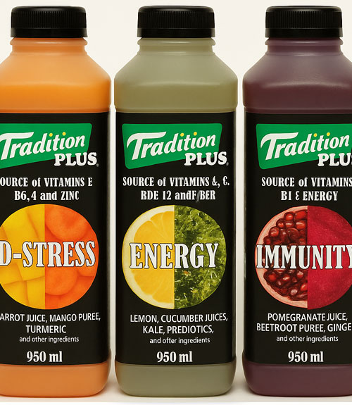 - Immunity: A blend with pomegranate juice, beetroot puree and ginger — a source of vitamins B1 and B6